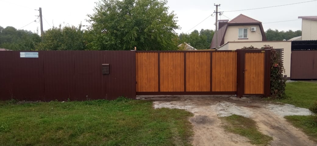 Откатные ворота 4100х1800 и калитка 900х1800 цвет рамы RAL 8017 шоколадный, заполнение заказчика