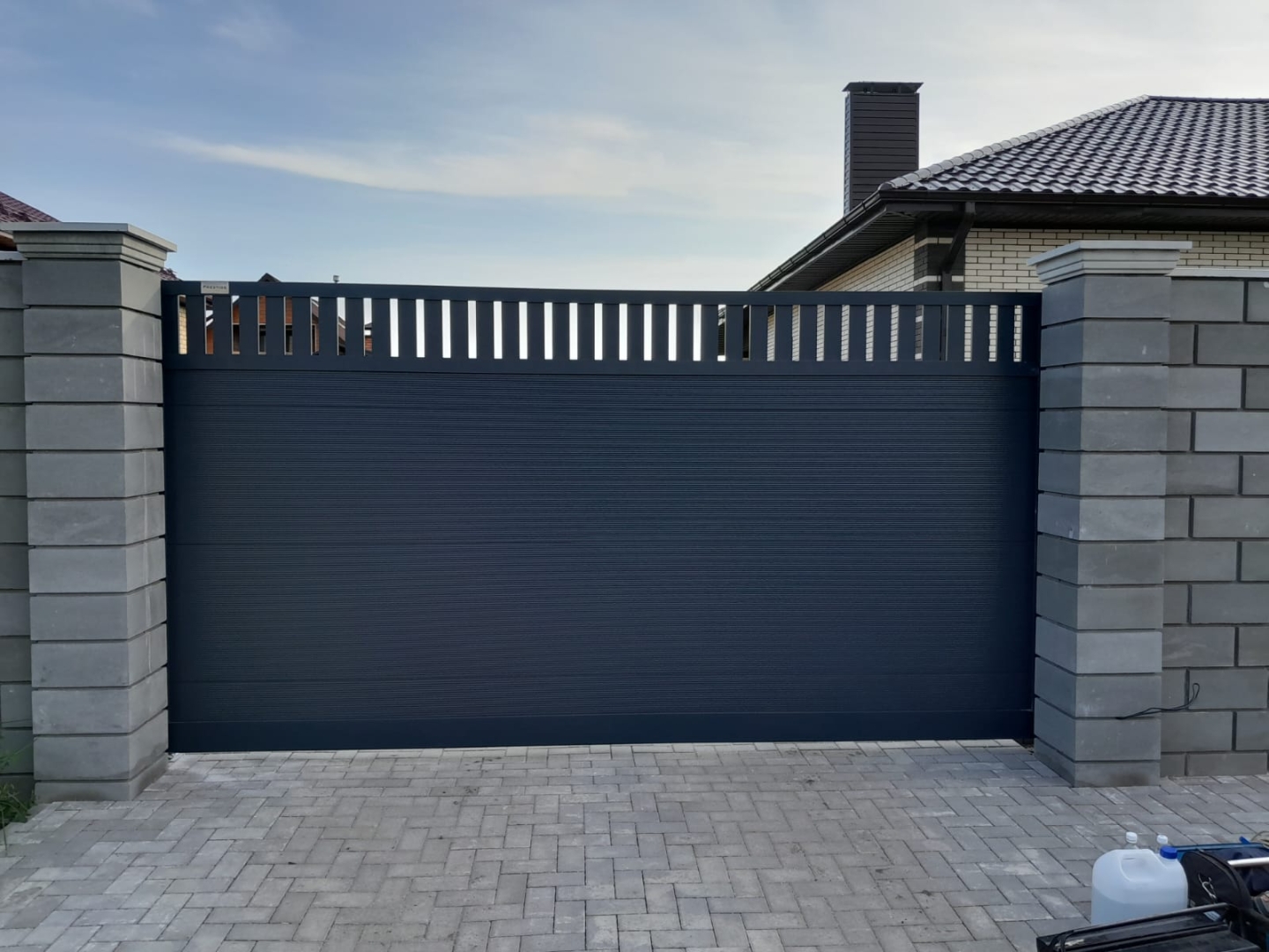 Откатные ворота Prestige 4100x1995 и калитка Prestige 800х1995 RAL 7016 серый антрацит