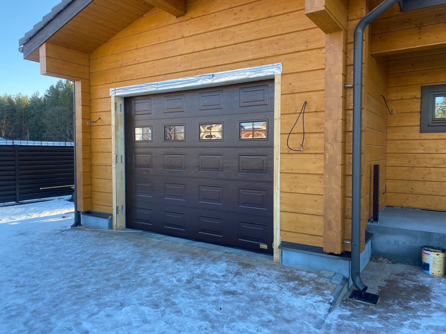 Секционные гаражные ворота Prestige 3320X2600, RAL 7024 серый графитовый, с окнами, с заполнением филенка