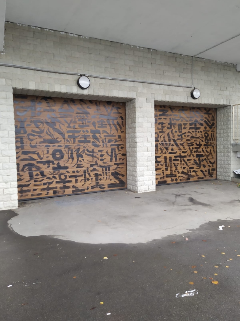 Секционные ворота Prestige 2800х2500 на мойке с фотопечатью, с калиткой